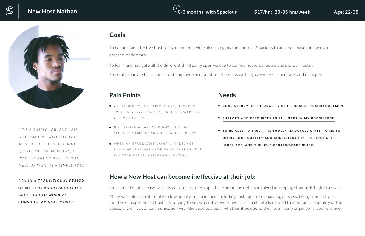 Once profiles were built on the users, it was determined that focus should be placed on New Host Users working in a Dedicated Space, as they were the most likely to have the most pain points while using the app, at the busiest locations.