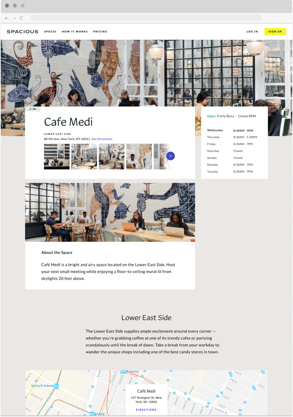A large selling point of the service was providing an atmospheric environment to work out of. It was hard to see all images of the locations in the original design.